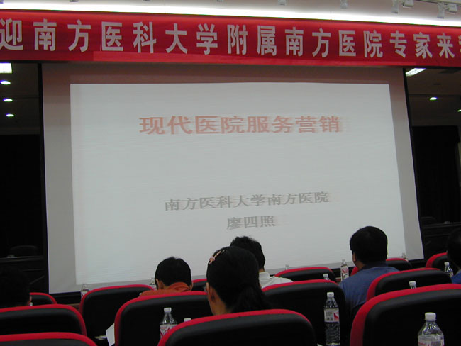 南方醫(yī)科大學(xué)附屬南方醫(yī)院專家來我院傳經(jīng)送寶 發(fā)布時(shí)間:2009年8月21日 預(yù)覽:4298次 8月4日,我院邀請了南方醫(yī)科大學(xué)附屬南方醫(yī)院領(lǐng)導(dǎo)和專家來我院傳經(jīng)送寶。醫(yī)院干部職工、市區(qū)的部分醫(yī)院、縣區(qū)的網(wǎng)絡(luò)醫(yī)院客人聞聲來到我院21樓綜合會議室。這天上午南方醫(yī)科大學(xué)附屬南方醫(yī)院醫(yī)務(wù)處處長、教授廖四照首先主講了《醫(yī)院服務(wù)營銷》;接著南方醫(yī)科大學(xué)附屬南方醫(yī)院王晉豫教授主講了《精益在醫(yī)院管理中的應(yīng)用》。下午,南方醫(yī)科大學(xué)附屬南方醫(yī)院院長、教授耿仁文主講了《提升以人為本的醫(yī)院文化》,三位領(lǐng)導(dǎo)和教授深入淺出的講學(xué)使聽眾受益非淺。(張永明)