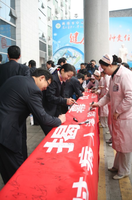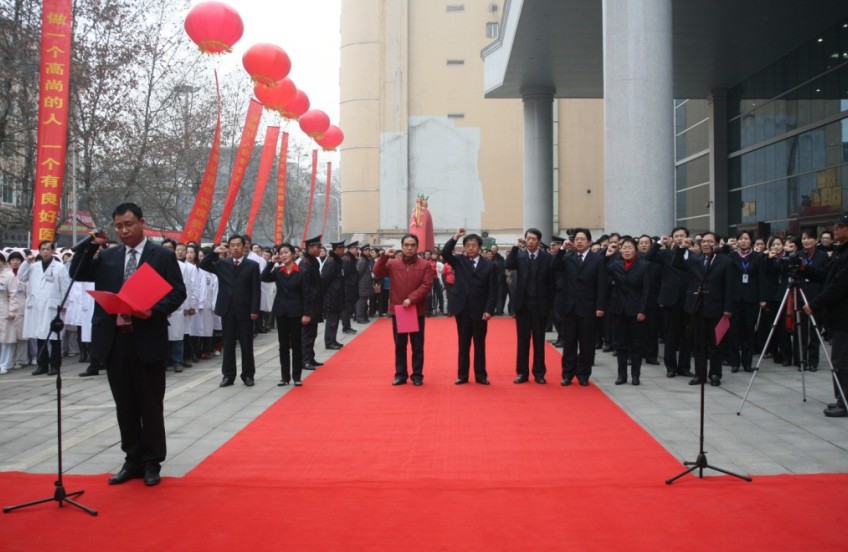 揭幕儀式上,近千名醫(yī)務(wù)人員肅立宣誓并鄭重簽名承諾:“對技術(shù)精益求精,對病人滿腔熱情,對工作極端負(fù)責(zé)?!?/B>