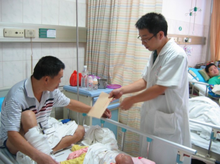 骨科中心為患者獻(xiàn)愛心 發(fā)布時(shí)間:2010年8月31日 預(yù)覽:3447次 骨科中心為患者獻(xiàn)愛心 8月31日上午,骨科中心二區(qū)全體醫(yī)護(hù)人員在伍岳主任、潘燕護(hù)士長(zhǎng)的帶領(lǐng)下,為該病區(qū)困難病人12、13床進(jìn)行捐款,共捐贈(zèng)金額1150元。