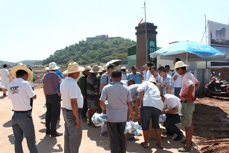 我院對(duì)異地?cái)U(kuò)建工程項(xiàng)目施工隊(duì)伍進(jìn)行慰問 發(fā)布時(shí)間:2013年8月2日 預(yù)覽:12093次 我院對(duì)異地?cái)U(kuò)建工程項(xiàng)目施工隊(duì)伍進(jìn)行慰問 8月1日上午,我院副院長(zhǎng)羅曉波、工會(huì)主席蔡春香、副院長(zhǎng)唐業(yè)華率醫(yī)務(wù)部、護(hù)理部、藥學(xué)部醫(yī)務(wù)人員到我院異地?cái)U(kuò)建工程項(xiàng)目工地現(xiàn)場(chǎng)對(duì)奮戰(zhàn)在炎炎烈日下的施工隊(duì)伍進(jìn)行了慰問,為每一位施工人員贈(zèng)送了精心準(zhǔn)備的抗暑藥品及涼茶。 我院異地?cái)U(kuò)建工程項(xiàng)目自破土動(dòng)工以來,施工隊(duì)伍抗酷暑、戰(zhàn)高溫,在持續(xù)高溫的惡劣環(huán)境下取得了一定的成績(jī),已完成了門診部大樓、住院部大樓地下室土方開挖及轉(zhuǎn)運(yùn)工程?,F(xiàn)正全面進(jìn)行住院部大樓樁基施工、辦公及生活用房和臨時(shí)道路的建設(shè)。 (李志輝)