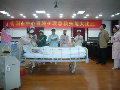 護(hù)理急救技術(shù)大比武 發(fā)布時(shí)間:2004年11月14日 預(yù)覽:7619次 《護(hù)士條例》的出臺(tái)要求我們護(hù)理人員緊急情況下為搶救垂?;颊呱鼞?yīng)當(dāng)實(shí)施必要的緊急救護(hù)。為了讓全院護(hù)士更好服務(wù)于病人,強(qiáng)化急救技能,護(hù)理部于11月7日舉行了護(hù)理急救技術(shù)大比武,此次比武共設(shè)立2005年國際心肺復(fù)蘇術(shù)、簡易呼吸器的使用、電動(dòng)吸痰法三項(xiàng)操作。由全院各護(hù)理單元選送24名選手參加“比武”經(jīng)過激烈競爭,共有7名進(jìn)入決賽取得佳績。她們是:第一名血透室陳玉蘭,第二名神經(jīng)外科朱潔,第三名骨科二區(qū)厲璐,優(yōu)勝獎(jiǎng)骨科一區(qū)周玲, 120急救中心江嵐,呼吸內(nèi)科 雷敏,急診科 周景衡 。護(hù)理部下階段工作中將以點(diǎn)帶面,提高全院護(hù)士急救技術(shù)水平。(來臨)