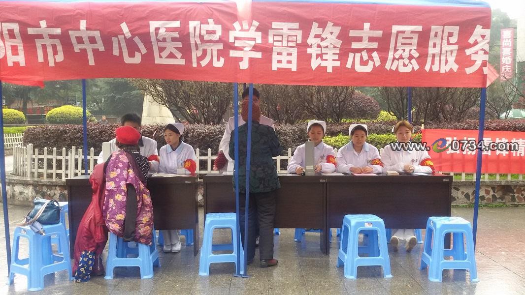 3月5日上午,衡陽(yáng)市中心醫(yī)院在雁峰公園前開(kāi)展“學(xué)雷鋒志愿服務(wù)”活動(dòng),為雁城人民開(kāi)展義務(wù)就診和普及醫(yī)學(xué)知識(shí)活動(dòng)。