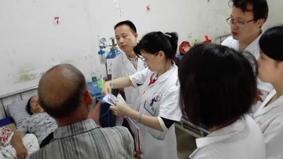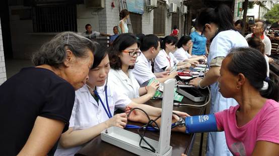 義診活動(dòng)一開始,各位專家熱情地接待群眾,忙著給前來咨詢、看病的群眾測血壓、做檢查,耐心細(xì)致地解答患者的疑難問題,并有針對(duì)性地進(jìn)行健康宣教、開出健康處方。專家們緊張而有序地忙碌著,當(dāng)看到群眾們那一張張綻開的笑臉,更激發(fā)了大家的工作熱情。盡管炎炎烈日卻絲毫沒有消減大家義診的熱情。同時(shí),覃春蓮主任、李春虹主任、朱曉宇主任等專家同鎮(zhèn)衛(wèi)生院醫(yī)生一起進(jìn)行了查房,對(duì)衛(wèi)生院專業(yè)技術(shù)人員進(jìn)行了相關(guān)指導(dǎo)。