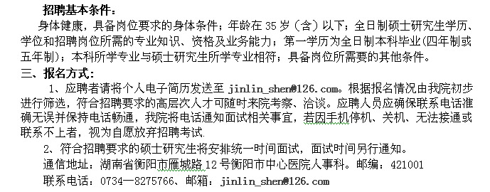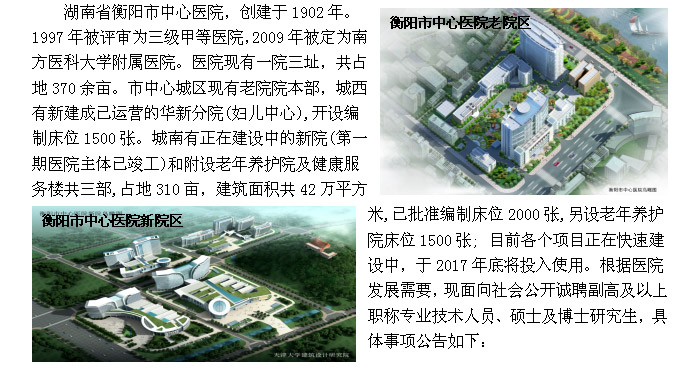 衡陽市中心醫(yī)院2016年度人才引進(jìn)招聘公告