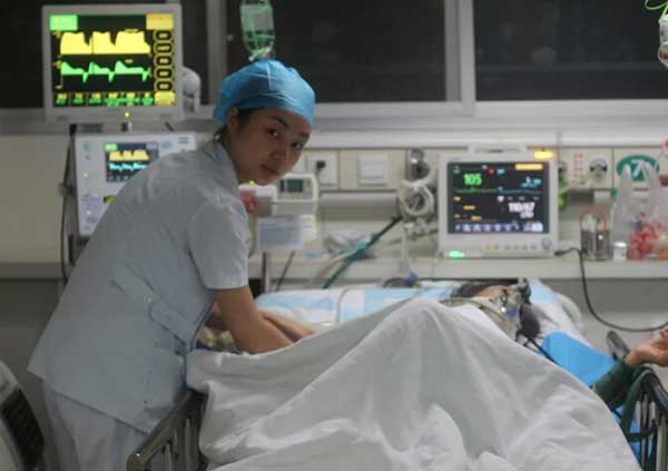 ICU里實(shí)施的是24小時(shí)無家屬陪護(hù),因此患者的治療、護(hù)理以及生活的重任都落在我們身上。從藥物治療、日常護(hù)理到生活護(hù)理便成了我們的家常。也許這些日常的生活護(hù)理,連他們最親近的人都從沒有給他們做過,而現(xiàn)在我們卻要給完全陌生的他們做,因?yàn)樗麄兪谴嗳醯牟∪?。每天早上要給病人口腔護(hù)理、洗臉、床上擦浴、更換衣服、喂食、清理大小便。記得有一次,我和老師管的七床是個(gè)腦出血的病人,好多天沒有解大便了。灌腸后,病人的宿便解了滿滿的一大床,惡臭。老師和我倒水擦洗,更換床單,那天他整整解了5次,我和懷孕的老師翻動(dòng)著190多斤的他。而他卻一臉無辜的昏迷著,不知道他醒了還會(huì)記得這些么,可這些就是我們的日常。