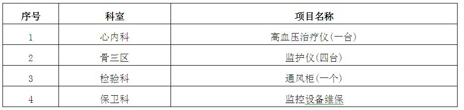 因醫(yī)院發(fā)展的需要,我院擬于近期對一批醫(yī)療設備及進行院內招標采購,歡迎具備條件的公司報名參加。