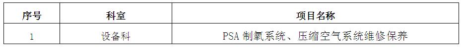 因醫(yī)院發(fā)展的需要,我院擬于近期PSA制氧系統(tǒng)、壓縮空氣系統(tǒng)維修保養(yǎng)進(jìn)行院內(nèi)招標(biāo)采購(gòu),歡迎具備條件的公司報(bào)名參加。