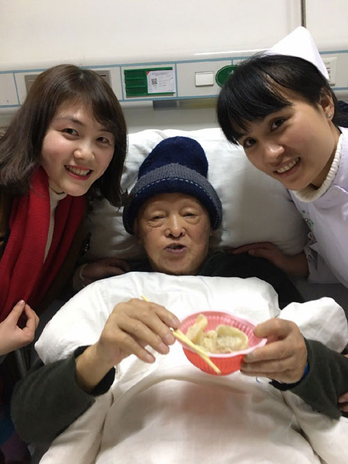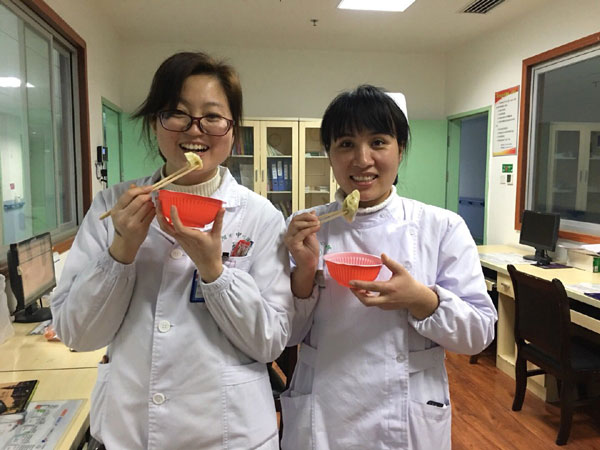 別樣的年味——我的除夕夜 發(fā)布時(shí)間:2018年2月26日 預(yù)覽:10609次 通訊員曾彩云報(bào)道:“喂,你怎么還不回來啊,村里在外面工作的都回來幾天了,你怎么還沒放假?你爸說要你回來過年”。我:“除夕這天是我值班,不能回去過年了,你們吃好喝好,不要掛念我?!彪娫捘穷^的媽媽沉默了一下:“那你自己多買點(diǎn)好吃的,別虧了自己,一個(gè)人過年也要吃好。既然要工作,那就好好工作,你爸那邊我去跟他說”。 就這樣,我開始了我的除夕夜,往年的今天,都是在家看電視,嗑瓜子,和家人吃團(tuán)圓飯,今年是我進(jìn)醫(yī)院的第一年,也是第一次在醫(yī)院過除夕,雖然也曾抱怨過護(hù)理這個(gè)職業(yè)的晝夜顛倒,抱怨它沒有節(jié)假日之分,抱怨它的不被人理解,抱怨它的……但在真正投入到這份工作后,它給我?guī)淼氖歉嗟某砷L、快樂和幸福感。比如這個(gè)除夕夜,我就一點(diǎn)都不孤單,反而內(nèi)心充滿了快樂和幸福?!安试?,彩云”,好像聽到有人在叫我,趕忙從治療室出來,哦,是麻護(hù)士長,我:“護(hù)士長,今天不是除夕嗎,您怎么來了?”護(hù)士長:“我們家今天包了餃子,就想帶給你們也嘗嘗,科室不是還有這么多老人沒回去過年嗎?我來看看他們,順便給他們拜個(gè)早年?!痹捖洌o(hù)士長就忙把餃子拿出來,還備了醬汁和一次性碗筷,爺爺奶奶們看到護(hù)士長來看他們,還帶了親手包的餃子,開心和感動(dòng)的說:“你們真是比我親孫女還好啊,除夕還來陪我們吃餃子,真是辛苦你們了”。45床劉亞輝奶奶伸出了大拇指,稱贊護(hù)士長是——“中國好護(hù)士長”。1床佘協(xié)金爺爺感動(dòng)的拿糖果往我們口袋里塞,我們說不要,謝謝爺爺,爺爺還是堅(jiān)持一邊往我們口袋里塞,一邊說著感謝的話……我和馮醫(yī)生吃著餃子,心里更是暖暖的。 我或許錯(cuò)過了第一時(shí)間與家人團(tuán)聚的機(jī)會(huì),錯(cuò)過了新春向長輩的第一聲祝福,錯(cuò)過了除夕夜的春節(jié)晚會(huì),錯(cuò)過了手機(jī)上瘋搶的紅包,卻用盡職盡責(zé)的堅(jiān)守,收獲了病人的笑容,收獲了患者家屬的感謝。老干科是我們的小家庭,醫(yī)院是我們的大家庭,雖然除夕不能和家人一起守歲,但取而代之的是一群特殊的家人,感受到的是一種特殊的團(tuán)圓,品嘗的是另一番“年味”。