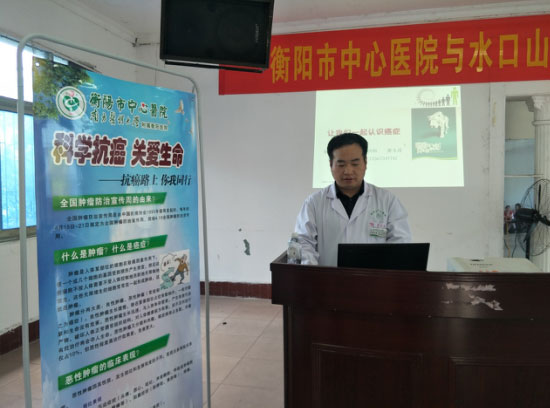 仁濟(jì)專家赴常寧水口山鎮(zhèn)開展抗癌科普義診 發(fā)布時(shí)間:2018年4月23日 預(yù)覽:2666次 來源:中國衡陽新聞網(wǎng) 2018-04-21 作者:殷君發(fā) 通訊員殷君發(fā)報(bào)道 4月15日—21日是第24屆“全國腫瘤防治宣傳周”,今年的主題是“科學(xué)抗癌,關(guān)愛生命,抗癌路上,你我同行”。21日,衡陽市中心醫(yī)院腫瘤內(nèi)科一區(qū)主任唐玉成、副主任醫(yī)師劉騫一行6名專家,與水口山職工醫(yī)院一道赴常寧市水口山鎮(zhèn)開展抗癌科普義診活動,當(dāng)?shù)亟?00名居民前來咨詢義診。 活動現(xiàn)場,專家們?yōu)榍皝碜稍兊木用窦?xì)心診治、耐心解釋、宣講防癌抗癌知識,許多人緊鎖的眉頭解開了。有2名水口山居民是唐玉成主任的老病人。一名肖姓患者接受肺癌手術(shù)后,18年來,唐玉成主任一直為其精心制定放療、化療方案,定期開展放療、化療,現(xiàn)在精神矍鑠,開朗樂觀,見到唐主任親切地猶如家人,家人稱唐主任為“救命恩人”。另一名騰姓患者,6年前接受前列腺癌手術(shù)后,一直是唐玉成為其實(shí)施內(nèi)分泌治療,老人感慨:患癌并不可怕,只要科學(xué)抗癌、堅(jiān)定信心,一定會平安無事!唐玉成主任還以《讓我們一起認(rèn)識癌癥》為題,為居民開展腫瘤防治科普講座。 下午,劉騫以《腫瘤治療的“十八般武器”》為題,與水口山職工醫(yī)院的醫(yī)務(wù)人員開展學(xué)術(shù)講座和學(xué)術(shù)交流。 相關(guān)鏈接:1.http://m.btime.com/item/router?gid=425j9thi9ib9ii9cf1ouk8iv5jq&from=singlemessage2.http://sdjs.chinareports.org.cn/ylws/2018/0421/4717.html?1524307857=&from=singlemessage3.http://epaper.hyqss.cn/html/2018-05/01/content_4_2.htm