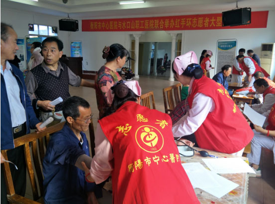 “紅手環(huán)”志愿者走進水口山鎮(zhèn)義診 發(fā)布時間:2018年4月23日 預覽:2960次 來源:中國衡陽新聞網 2018-04-21 作者:殷君發(fā) 通訊員殷君發(fā)報道 4月21日,衡陽市中心醫(yī)院與水口山職工醫(yī)院聯(lián)合舉辦紅手環(huán)志愿者大型義診活動。為常寧市水口山鎮(zhèn)近200名居民提供義診、科普講座、健康宣教、疾病普查和專業(yè)咨詢服務。 當天,衡陽市中心醫(yī)院神經內科主任、主任醫(yī)師胡新平、副主任醫(yī)師唐永輝、黃術良、副主任護師劉立君、羅小菊及水口山職工醫(yī)院副主任醫(yī)師戴廣生一行10余名專家來到水口山有色金屬集團有限公司老年活動中心,為居民開展測血糖、測血壓、心電圖、腦電圖和疾病咨詢工作,義診現場忙而不亂?;顒蝇F場,胡新平、唐永輝還為居民開展腦卒中基本知識健康講座,以通俗的語言、生地形象的畫面,介紹了腦卒中的預防、治療、飲食、休息知識。 下午,黃術良以《右心聲學造影》為題,與水口山職工醫(yī)院醫(yī)務人員進行了學術講座和交流。 衡陽市中心醫(yī)院副院長鄒建軍介紹,腦卒中目前是中國居民第一致死病因,發(fā)病率高、致死率高、致殘率高,給家庭和社會帶來沉重的負擔。衡陽市中心醫(yī)院是中國卒中學會紅手環(huán)志愿者協(xié)會成員單位,致力于腦卒中科學救治與科普宣傳,并與水口山職工醫(yī)院結成醫(yī)聯(lián)體醫(yī)院,幫助指導該院建立腦卒中中心和胸痛中心,為當地居民提供高水平的醫(yī)療技術服務。 相關鏈接:1.http://m.btime.com/item/router?gid=466455nbg70969pogq7lg81g31o&from=singlemessage2.http://sdjs.chinareports.org.cn/ylws/2018/0421/4718.html?1524307854=&from=singlemessage3.https://moment.rednet.cn/rednetcms/news/20180421/1245788.html?from=singlemessage 4.http://wjw.hengyang.gov.cn/xxgk/gzdt/zsdw/201804/t20180423_2164489.html 5.http://epaper.hyqss.cn/hywb/html/2018-04/25/content_11_2.htm6.http://mp.weixin.qq.com/s?__biz=MzI5MTQxNjI5OA==&mid=2247490429&idx=1&sn=d6ada271801259c716bf2d0ea9bc7b3e&chksm=ec11aaf8db6623ee7daeb4bc2b110b8cb27bc01c8662fc5d6a1d9160424ef925c0327b4a825f&mpshare=1&scene=23&srcid=0427HBFHASQIPnngSBsQeiVd#rd