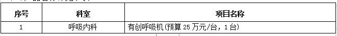 因醫(yī)院發(fā)展的需要,我院擬于近期對(duì)一批醫(yī)療設(shè)備進(jìn)行院內(nèi)招標(biāo)采購(gòu),歡迎具備條件的公司報(bào)名參加。