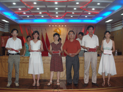 我院召開慶祝建黨85周年大會(圖) 發(fā)布時間:2006年7月4日 預覽:5532次 6月30日下午,我院慶祝建黨85周年大會隆重召開。會議在雄壯的國歌聲中開幕,院黨委副書記、院長段曉明同志主持大會并發(fā)表重要講話,院黨委書記陳蘭林同志向大會作工作報告,10名預備黨員在莊嚴的黨旗下宣誓入黨,一批先進黨支部、優(yōu)秀黨員和優(yōu)秀黨務工作者受到表彰。