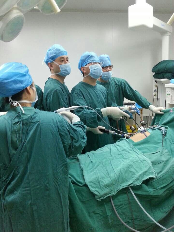 市中心醫(yī)院普外中心主任李珍發(fā)在做腹腔鏡下脾臟切除術(shù)。