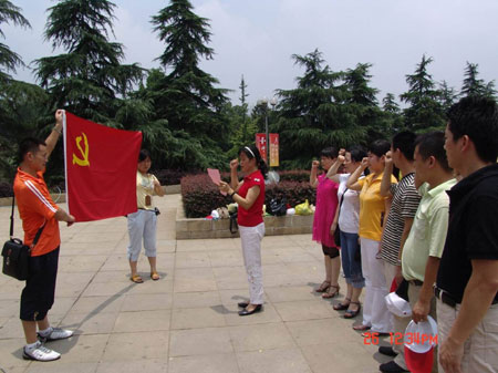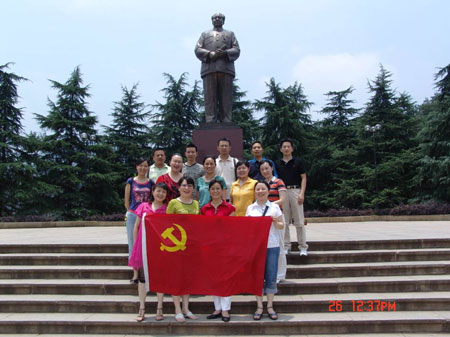 黨員歡聚韶山 發(fā)布時(shí)間:2008年6月28日 預(yù)覽:10320次 黨員活動(dòng) 中國(guó)共產(chǎn)黨誕辰87周年前夕,醫(yī)院黨委于6月26日組織8名新黨員和部分優(yōu)秀黨員赴韶山參觀學(xué)習(xí),并在毛澤東銅像廣場(chǎng)莊嚴(yán)宣誓。圖為黨員宣誓和參觀學(xué)習(xí)照片。 院辦:冷曉君