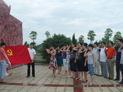 6月30日,醫(yī)院黨委組織13名新發(fā)展黨員前往夏明翰同志故居參觀學習,并在烈士雕像前莊嚴宣誓。(黨辦 冷曉君)