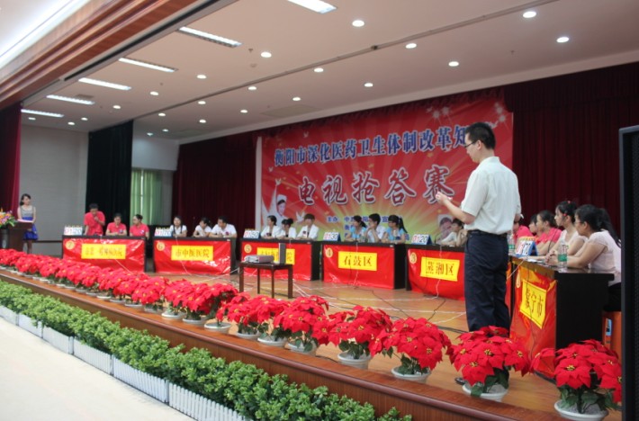 衡陽市醫(yī)改知識搶答賽在我院舉行(圖) 發(fā)布時間:2010年8月25日 預覽:3566次 衡陽市醫(yī)改知識搶答賽在我院舉行 2010年8月24日,衡陽市深化醫(yī)藥衛(wèi)生體制改革知識搶答賽在我院21樓多功能會議室舉行。該次活動由市委宣傳部、市衛(wèi)生局、市廣播電影電視局、市總工會聯(lián)合舉辦,共有來自各縣市區(qū)的21支代表隊參加比賽。經過一整天的激烈角逐,我院代表隊榮獲二等獎,喬鋒榮獲優(yōu)秀搶答獎。(劉博)