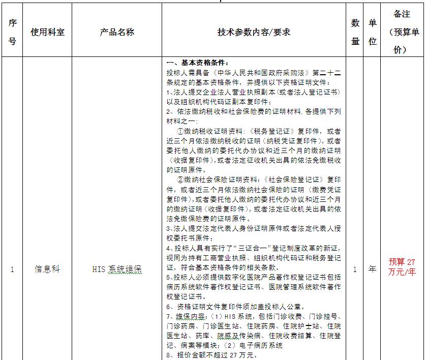 因科室業(yè)務(wù)發(fā)展的需要,我院擬于近期對信息科HIS維保進(jìn)行院內(nèi)招標(biāo)采購,歡迎具備條件的公司報(bào)名參加。
