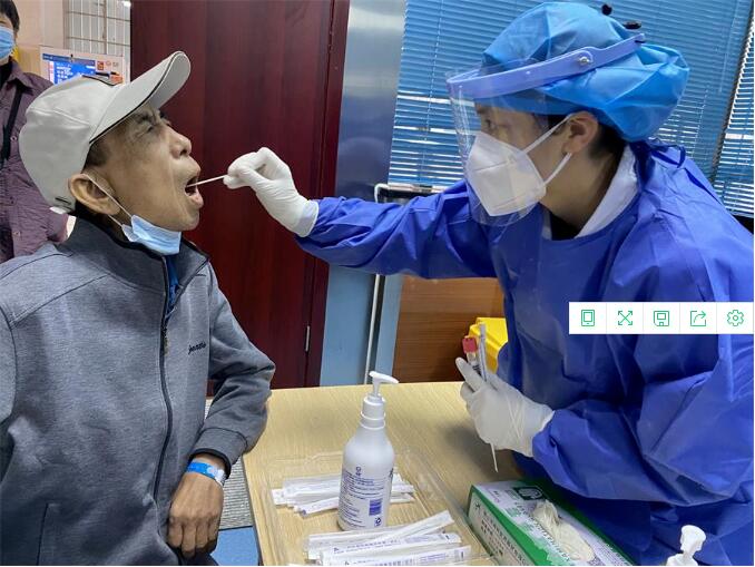 工作人員在醫(yī)院大門口認真查驗健康碼
