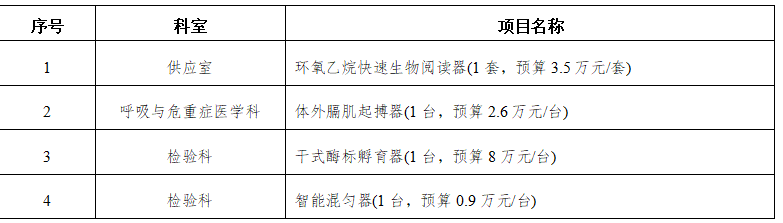 因醫(yī)院發(fā)展的需要,我院擬于近期對一批醫(yī)療設(shè)備進(jìn)行院內(nèi)招標(biāo)采購,歡迎具備條件的公司報(bào)名參加。