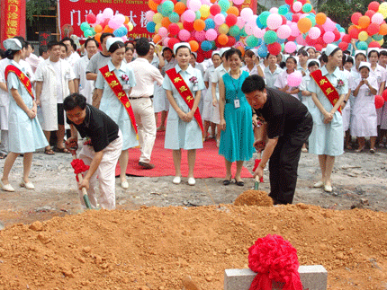 我院門(mén)診綜合大樓隆重奠基 發(fā)布時(shí)間:2007年7月11日 預(yù)覽:5060次 7月10日,碧空萬(wàn)里,艷陽(yáng)高照。我院門(mén)診綜合大樓奠基儀式隆重舉行。 當(dāng)天上午,門(mén)診綜合大樓建設(shè)工地上彩球飄揚(yáng),樂(lè)聲陣陣。市黨政領(lǐng)導(dǎo)張自銀、胡國(guó)初、王雄飛、楊邦偉、石正宏、廖本翔、劉日煊等出席了儀式,市有關(guān)部辦委局領(lǐng)導(dǎo)、雁峰區(qū)領(lǐng)導(dǎo)、市直醫(yī)療衛(wèi)生單位負(fù)責(zé)人以及施工單位和醫(yī)院代表近600人見(jiàn)證了這一盛典。 市委副書(shū)記張自銀代表市委、市人大、市政府、市政協(xié)發(fā)表了重要講話(全文另發(fā))。 院黨委書(shū)記、院長(zhǎng)申錦林代表醫(yī)院作了熱情洋溢的致辭(全文另發(fā))。 講話后,市領(lǐng)導(dǎo)、市衛(wèi)生局領(lǐng)導(dǎo)和醫(yī)院領(lǐng)導(dǎo)為門(mén)診綜合大樓奠基揮楸培土。 市衛(wèi)生局局長(zhǎng)趙安民主持了奠基儀式。 (文:建軍 圖:波勇)