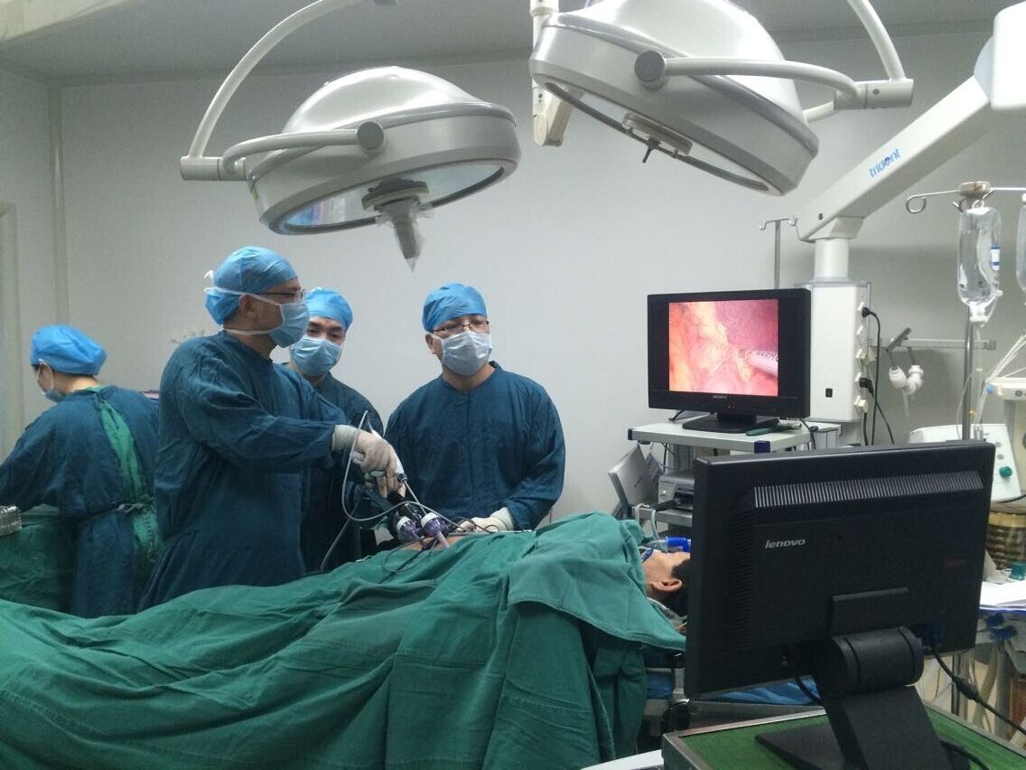對(duì)于多原發(fā)癌的治療,目前仍采用手術(shù)為主,化放療相結(jié)合的綜合治療手段。此類患者,若采取傳統(tǒng)開腹手術(shù),手術(shù)創(chuàng)面將波及整個(gè)腹部,腹部將會(huì)遺留至少長約20cm手術(shù)疤痕,術(shù)后恢復(fù)慢,住院時(shí)間長,腫瘤種植復(fù)發(fā)、切口裂開、切口疝的概率將大大增加。而采用腹腔鏡手術(shù),患者完全不用擔(dān)心腫瘤切不干凈,因?yàn)楦骨荤R手術(shù)視野將放大6倍,不但能將腫瘤完整切除,更能將細(xì)小的癌灶及淋巴結(jié)完整清除,同時(shí)減少了腹部創(chuàng)傷,腹部也僅僅會(huì)遺留一長約5cm手術(shù)疤痕,但腹腔鏡手術(shù)要求高,技術(shù)難度大,國內(nèi)外腹腔鏡下胃結(jié)腸同發(fā)癌一期根治較少,而衡陽市尚未有類似報(bào)道。